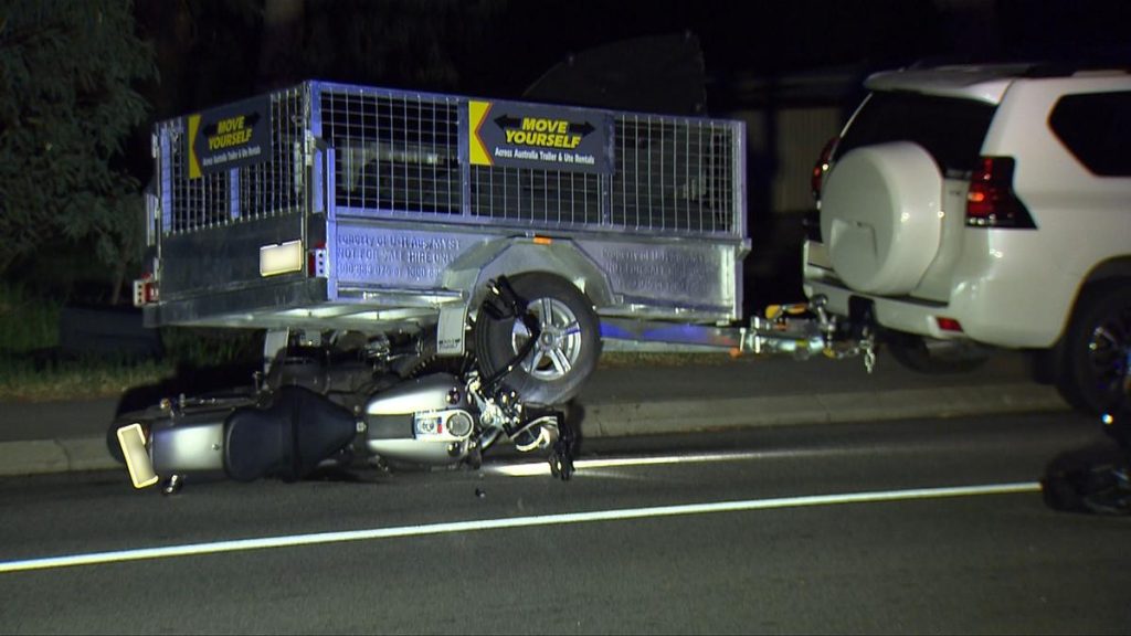The man in his 30s was rushed to Royal Perth Hospital after crashing with a Toyota Prado on Gay Street in Huntingdale, south east of the city, just after 8pm on Monday.